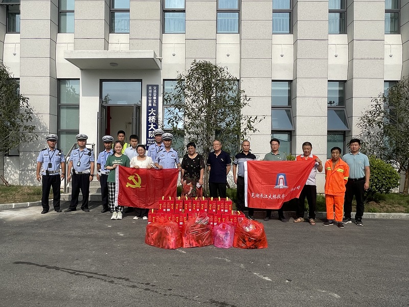 為表達(dá)對(duì)辛苦執(zhí)勤的一線交警及道路管養(yǎng)人員的敬意和慰問,7月18日下午,蕪湖長江大橋投資建設(shè)有限公司開展了共建慰問送清涼活動(dòng),公司為一線交警及城建集團(tuán)道路管養(yǎng)人員送上了清涼的飲用水、防曬用品等物資。