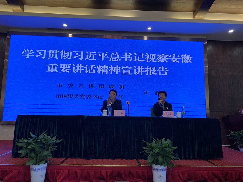 活動(dòng)第二部分,公司邀請(qǐng)了市委宣講團(tuán)成員、市國資委黨委書記、主任江瀾同志給公司全體員工作了《學(xué)習(xí)貫徹習(xí)近平總書記視察安徽重要講話精神》的宣講。江主任對(duì)習(xí)總書記視察安徽重要講話精神作了深刻的闡述,并結(jié)合實(shí)際對(duì)我公司為蕪湖市經(jīng)濟(jì)、產(chǎn)業(yè)發(fā)展所作貢獻(xiàn)、取得成績(jī)給予高度認(rèn)可,進(jìn)一步激發(fā)了公司全體員工干事創(chuàng)業(yè)的激情。