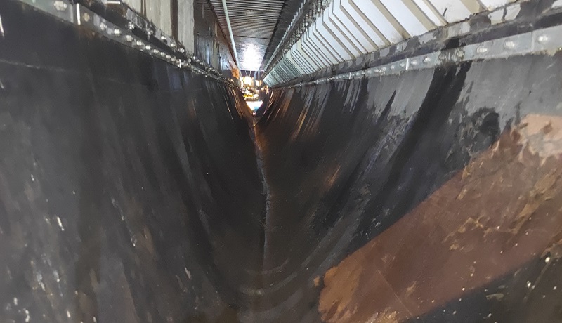 蕪湖長(zhǎng)江三橋主橋0#、5#墩處采用最大伸縮量為1200mm的梳齒形伸縮縫,齒間距約50mm,通過(guò)橡膠止水帶收集雨水后排至兩側(cè)雨水斗進(jìn)入雨水系統(tǒng)。自三橋通車(chē)以來(lái),車(chē)輪及雨水裹挾泥沙由梳齒間隙進(jìn)入伸縮縫,止水帶內(nèi)存有不少泥沙和雜物。隨著時(shí)間的推移,止水帶內(nèi)積沙積泥載荷增大,將會(huì)對(duì)正下方高鐵運(yùn)行產(chǎn)生威脅。為及時(shí)消除安全隱患,大橋公司路產(chǎn)安全部養(yǎng)護(hù)人員組織外協(xié)單位多次前往現(xiàn)場(chǎng)確定清理方案及安全防護(hù)措施,并在公司領(lǐng)導(dǎo)帶領(lǐng)下及時(shí)對(duì)接鐵路蕪湖工務(wù)段,申請(qǐng)高鐵運(yùn)行天窗期開(kāi)展專(zhuān)門(mén)清理工作。